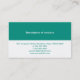 Simple et moderne est le regard sur ce carte de visite. Des affaires ou un nom personnel sont dominant sur l'avant de la carte avec l'information de contact principale, un numéro de téléphone ou site Web, frappant hors du panneau d'aqua ci-dessous. Ajoutez une description des services sur l'inverse au dessus avec toute l'information de contact imprimant ci-dessous dans la sarcelle d'hiver. Disponible dans des couleurs alternatives.