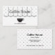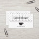Carte de visite pour un café-restaurant illustré avec un auvent et une tasse. La conception est minimaliste noir et blanc.