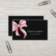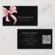 Carte De Visite Simple Elegant Black Pink Bow QR Code