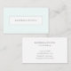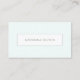 Cartes de visite minimalistes recto verso avec votre nom sur un rectangle blanc sur un arrière - plan bleu turquoise clair sur le devant et vos coordonnées en texte gris sur un arrière - plan blanc sur le dos. Parfait pour un maquilleur, coiffeur, cosmétologue, mariage / planificateur d'événements, décorateur / graphiste, massothérapeute, salon, spa, avocat ou photographe.