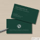 Faites une impression durable avec nos Cartes de visite Simple Professional Dark Green avec une élégante typographie serif sur un arrière - plan classique vert foncé. L'arrière comprend un emblème géométrique argenté frappant qui peut être remplacé par votre logo, ainsi qu'un espace pour un avertissement de l'industrie. Parfait pour les professionnels d'affaires qui cherchent à faire une impression durable.