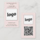 Carte De Visite Simple Logo Text QR Code Vertical Blush Pink