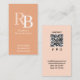 Carte De Visite Simple Monogram QR Code Peach | Connect with Me