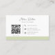 Ces simples cartes de visite vert pastel sont personnalisables et vos informations d'affaires sont faciles à ajouter. Avec le code QR au dos + toutes vos coordonnées, c'est un carte de visite complet à distribuer. Cette collection de pastel en 4 couleurs est la plus appropriée pour les boutiques et les marques calmes et féminines. Comme les boutiques de vêtements pour enfants et pour bébés, les boutiques et les marques de beauté zen.