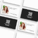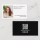 Un design simple comprend un modèle de carte de visite de code QR, avec une photo simple, et un style professionnel moderne, avec un code barre scannable pour un site Web ou les médias sociaux, un design chic minimaliste et tendance, avec des détails de contact minimes, et un arrière - plan blanc et noir doublé au fond, une photo photo texte superposer carte de visite.