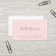 Un simple carte de visite rose pâle avec un texte minimal dans un script manuscrit.