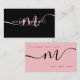 Carte De Visite Simple rose pâle Mini Monogramme Script noir