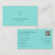 Carte De Visite Simple Turquoise avec Monogramme et QR Code Modern