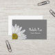 Carte de visite botanique simple, avec une image de marguerite blanche sur un arrière - plan gris. Avec des lettres typographiques blanches et noires, vous pouvez customiser avec vos propres informations. Parfait pour faire connaître votre entreprise !