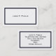 Un simple carte de visite avec une bande bleu foncé encadrant un arrière - plan blanc et une impression noire. Les détails customisés que vous voudrez inclure se trouvent à l'envers, avec la bande bleu foncé, un arrière - plan blanc et une impression noire. ==============