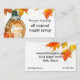 Un carte de visite qui vend du sirop d'érable décoré d'une bouteille de sirop de verre et bordé de feuilles d'érable colorés et accentué de taches d'aquarelle sur un arrière - plan blanc au texte noir que vous pouvez modifier pour répondre à vos besoins.