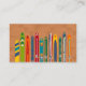 Create a colorful, eye-catching business card to promote your ski rental, ski instruction or other skiing related business. These business cards feature my illustrations of brightly colored vintage skis, and have a light brown background that mimics the look of the wood siding of a ski lodge. All of your business details appear in bold white lettering. Easily customize these cards with any information you want to share with your customers and prospective clients.