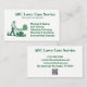 Un carte de visite professionnel et intemporel pour les services d'entretien de pelouse, avec une illustration de tondeuse de style vintage, un agencement propre et une liste complète des services. Parfait pour les paysagistes, les jardiniers et les professionnels de l'entretien des jardins qui cherchent à faire une impression de confiance.