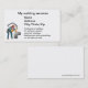 Carte de visite, taille : Grande : 8,9 cm x 6,4 cm, papier : Signature Matte, coins : Carré