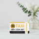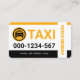 Overleaf, the same design theme is used. At the top is the taxi logo followed by the contact details and a slogan option to publicize your services.