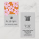 The Spring Blooms You Help Us Grow Appreciation Card est un outil de marketing pour petites entreprises qui fait partie de la collection Gray Carte de visite Designs & Marketing Items. Un design élégant avec des fleurs de printemps roses contre un arrière - plan orange définit l'avant. Logo, texte et code QR sont des espaces réservés à remplir avec les détails de votre entreprise. Utilisez cette carte pour montrer l'appréciation du client et soutenir la loyauté de la marque et même construire une bourse sur votre présence sociale. Les entreprises locales comme le fleuriste, les salons, les cafés et les boutiques y font fidélité. Toutes les parties de la carte sont personnalisables en couleur en suivant la modification à l'aide du lien de l'outil de conception. Pour plus d'idées d'image de marque, visitez www.KBMD3signs.com. Pour obtenir de l'aide sur la personnalisation, contactez info@KBMD3signs.com.