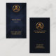 Le design présente un élégant arrière - plan bleu foncé accentué par les croustillants de différentes nuances bleues de différentes opacité. Au sommet se trouve le faux logo or d'un chauffeur. Au milieu, vous avez votre nom prestigieux et votre titre de travail. Les coordonnées viennent ensuite et se trouvent près du plancher de la carte.