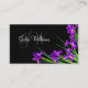 Conception chique de modèle de cartes de visite de monogramme dans une conception bilatérale futée qui vous laisse comporter vos initiales de nom et de monogramme dans une police élégante d'affichage et élément de conception florale de fleurs d'iris à l'arrière-plan qui ajoute un contact de nature. Personnalisez l'espace de monogramme et votre information de contact sur le dos conçu pour un concierge professionnel, le conseiller ou même un wedding planner.