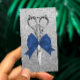 Carte De Visite Stylo à cheveux Navy Bleu Bow Ciseau Silver Partie