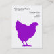 Modèle de carte de visite avec un symbole de poulet (Hen). Nom de l'entreprise, type d'entreprise et adresse sur le devant avec nom, titre de l'emploi, téléphonie, adresses web et e-mail sur le dos, avec la même disposition.