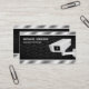 Carte de visite élégant avec caméra CCTV aux accents métalliques sur un arrière - plan noir damassé. Personnalisez-le avec votre nom et vos coordonnées pour faire une première impression durable.