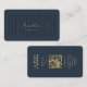 Technicien de recherche Monogramme moderne carte de visite en or bleu foncé avec code QR