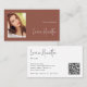 Elegant modern handwritten signature calligraphy script name feminine generic terracotta natural business card template with scanning QR code to website, catalog, or portfolio and custom photo. Suitable for promotional marketing, personal branding, and networking for small business or independent business professionals: makeup artists, hair stylists, home designers, personal stylists, event wedding planners, lifestyle bloggers, writers, filmmakers, screenwriters, and artists.