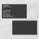 Modèle de carte de visite avec une mise en page simple en texte seulement. Un design carte de visite simple en soi ou une excellente peinture de départ pour d'autres personnalisations puisque toutes les caractéristiques de ce design peuvent être customisées. Vous pouvez également ajouter des images, des logos, etc. L'envers peut également être customisé.