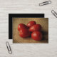 Cette délicieuse carte de commerce d'artiste présente une photo à vie morte de 5 tomates rouges mûres, juteuses, éclatantes avec grand goût. Elles sont disposées sur un tapis de paille doré brun.