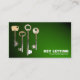 Modèle de carte de visite avec un arrangement de clés. Détails de l'entreprise sur le devant, avec nom et coordonnées au verso avec une répétition du motif des touches. Peut être customisé de plusieurs façons convenant à de nombreux types d'entreprises, en particulier les propriétaires, la gestion immobilière, les agences de location. serrer les forgerons, la sécurité, etc. Cette version a un effet spotlit arrière - plan.