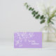 Modèle de carte de visite moderne à fleurs et à oiseaux violets, avec des tourbillons blancs et des lignes pointillées avec feuilles, fleurs et oiseaux sur des anneaux suspendus sur lavande violet arrière - plan. Ce design moderne et mignon a une atmosphère rétro et est parfait pour un usage personnel ou professionnel.