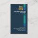 Au-dessus de la feuille, un motif vertical frappant au mur droit abrite les détails. Le logo du camion d'or est en haut, suivi de votre prestigieux nom et titre de travail avec les coordonnées et l'option slogan près de la base.