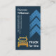 Au sommet de la carte se trouve votre nom prestigieux. Juste en-dessous, vous trouverez le nom d'entreprise inversé et les coordonnées des personnes-ressources. Près de la base de la carte est un faux logo de semi-camion d'or que vous pouvez utiliser avec le slogan "camion à louer" ; Modifiez la légende pour qu'elle corresponde à vos besoins.
