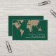 Modern dark-green professional card with name (manuscript font style) and custom travel related occupation (travel agent) and the image of a faux sepia gold map of the world... and templates for address, email and phone at the back...