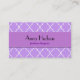 Carte de visite élégante, chic et raffinée avec motif de trellis marocain violet. Design moderne et tendance, parfait pour les amateurs de lattes.