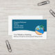 Tropical theme beach Realtor business cards created with a graphic of a palm tree and coastal ocean view graphic in this custom template you can personalize online for a real estate agent, buyers agent or sellers agent.