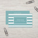 Carte De Visite Turquoise moderne et blanc rayures Nom du monogram