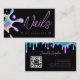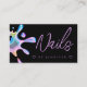Carte de visite noire personnalisée pour technicien en ongles avec vernis holographique éclaboussé et code QR
