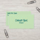 Cartes de visite personnalisés à thé vert pâle avec une police plus foncée.
