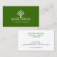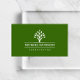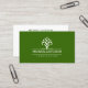 Un arbre blanc et audacieux plein de feuilles est placé sur un vert foncé sur ce modèle de carte de visite professionnelle pour les entreprises d'aménagement paysager. © 1201AM CREATIVE