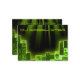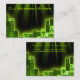 Un modèle de businesscard du DJ de cool avec une conception renversante d'un grand des haut-parleurs rougeoyants flurocent vert de pile et des lumières lasers vertes dans le ciel nocturne a combiné avec les notes noires de musique de contre-jour sur un arrière - plan foncé.
