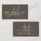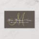 Simple, simple, taupe carte de visite avec monogramme vert est un modèle parfait pour customiser pour toute entreprise professionnelle. Utilisez la fonction monogramme pour créer un logo d'entreprise avec l'initiale du nom de votre entreprise, dans la couleur de votre choix, puis ajouter le nom de l'entreprise en caractères blancs sur le dessus. Ajoutez votre adresse professionnelle, votre email, votre numéro de téléphone et votre site Web ainsi que toute information supplémentaire au verso de la carte en utilisant les champs modèle OU sélectionnez "customiser" pour des options de modification supplémentaires. Elke Clarke ©2009. Pour d'autres couleurs arrière - plans, veuillez contacter le propriétaire du magasin.