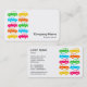 Un modèle de carte professionnelle/profil avec un motif composé de dix symboles de voiture dans cinq couleurs différentes et voyageant dans des directions alternées. Nom de l'entreprise et type d'entreprise sur l'avant équilibré avec le motif sur la gauche. Nommez un autre contact au verso avec le motif à droite. Prêt à être customisé avec vos détails. Peut convenir à une entreprise de taxi, une école de conduite ou toute entreprise liée à la circulation automobile.