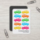 Un modèle de carte de visite avec un motif composé de dix symboles de voiture dans cinq couleurs différentes alternant et voyageant dans des directions alternées. Nom de l'entreprise et type d'entreprise sur le devant avec nom et coordonnées sur le dos. Peut être adapté à une variété d'entreprises et d'autres utilisations. Peut également être adapté pour une utilisation plus comme une carte de profil en enlevant ou en échangeant les données de l'entreprise et du nom personnel.