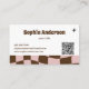 Carte De Visite Wavy Retro Pink & Brown Checker avec code QR