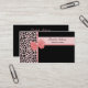 Un carte de visite rose et noir couleur pêche moderne et à la mode de wedding planner d'empreinte de léopard avec un ruban mignon et girly attaché dans un arc élégant. Une conception animale à la mode de motif pour annoncer vos services en tant que coordonnateur l'épousant certifié. Image imprimée d'appartement, arc non réel.