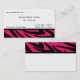 Carte zèbre noire et rose avec beaucoup de place en blanc pour des informations de contact importantes.