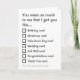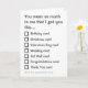 Pourquoi acheter différentes cartes pour différentes occasions ? Achetez simplement cette carte humoristique à choix multiple et cochez l'occasion la plus appropriée. Vous gagnez des heures à chercher la bonne carte !