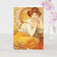 Carte de voeux Alphonse Mucha Topaz. Peinture à l'huile sur toile. L'artiste tchèque Alphonse Mucha peint fréquemment des allégories, et Topaz est une série représentant des pierres précieuses comme de belles femmes. Le tableau présente une jeune belle jeune femme vêtue d'une robe topaze profonde, et placée à l'intérieur d'un arrière - plan orné de bijoux. Un grand cadeau pour les fans de Mucha, Art Nouveau, et tirages vintages.