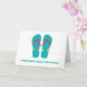 Une paire de tongs "Aqua" colorés avec des sangles jaunes et rouges. Texte : "Salutations de la plage" dans une police cool. Customisez facilement le texte avec votre propre message personnalisé. Couleur de police : #11B3B8
